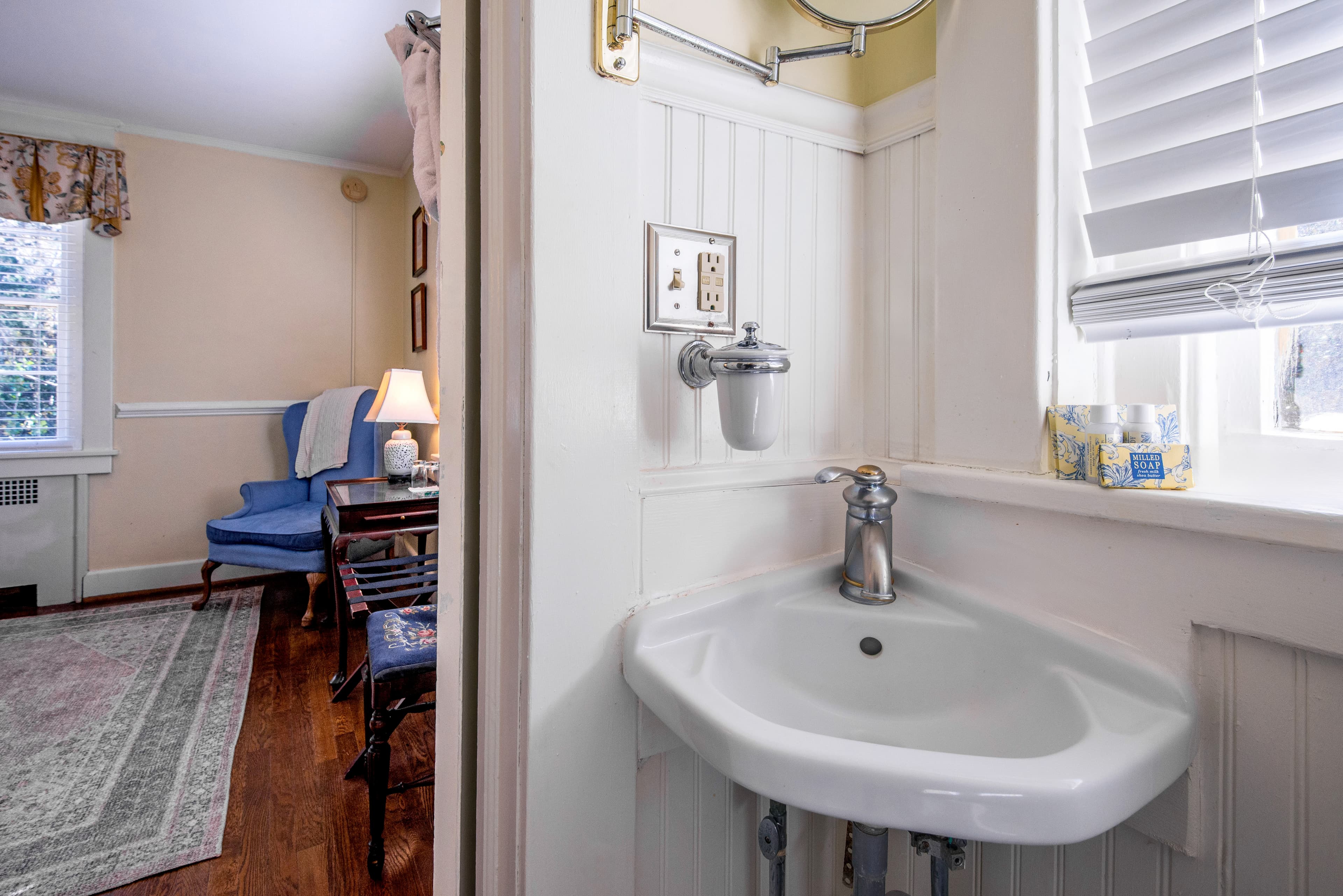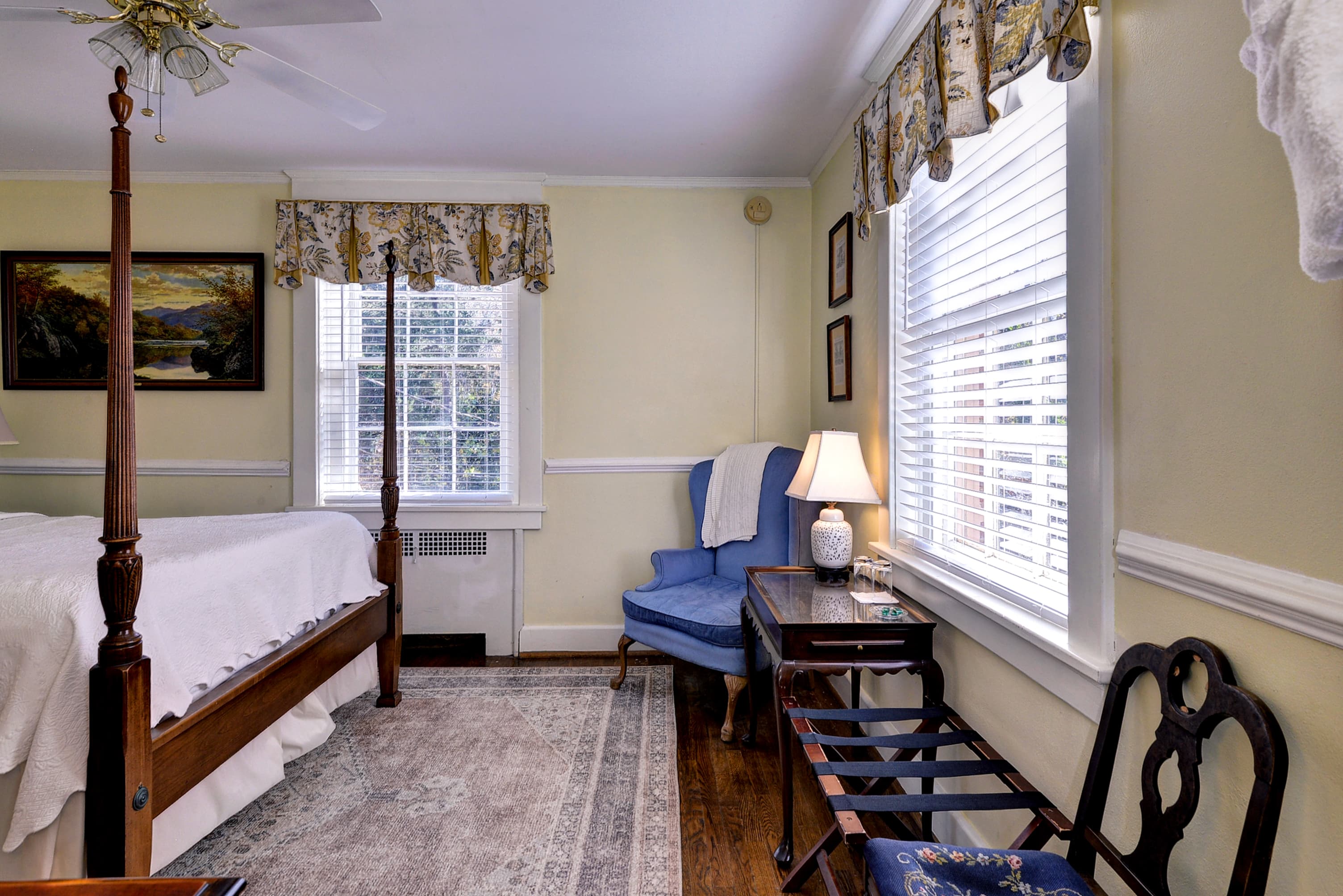 This cozy first floor room has an oriental flair and soft beauty that the First Lady herself would enjoy. The antique four-poster bed, converted to queen size for today's comfort, is the focal point of this quaint, intimate bed chamber.